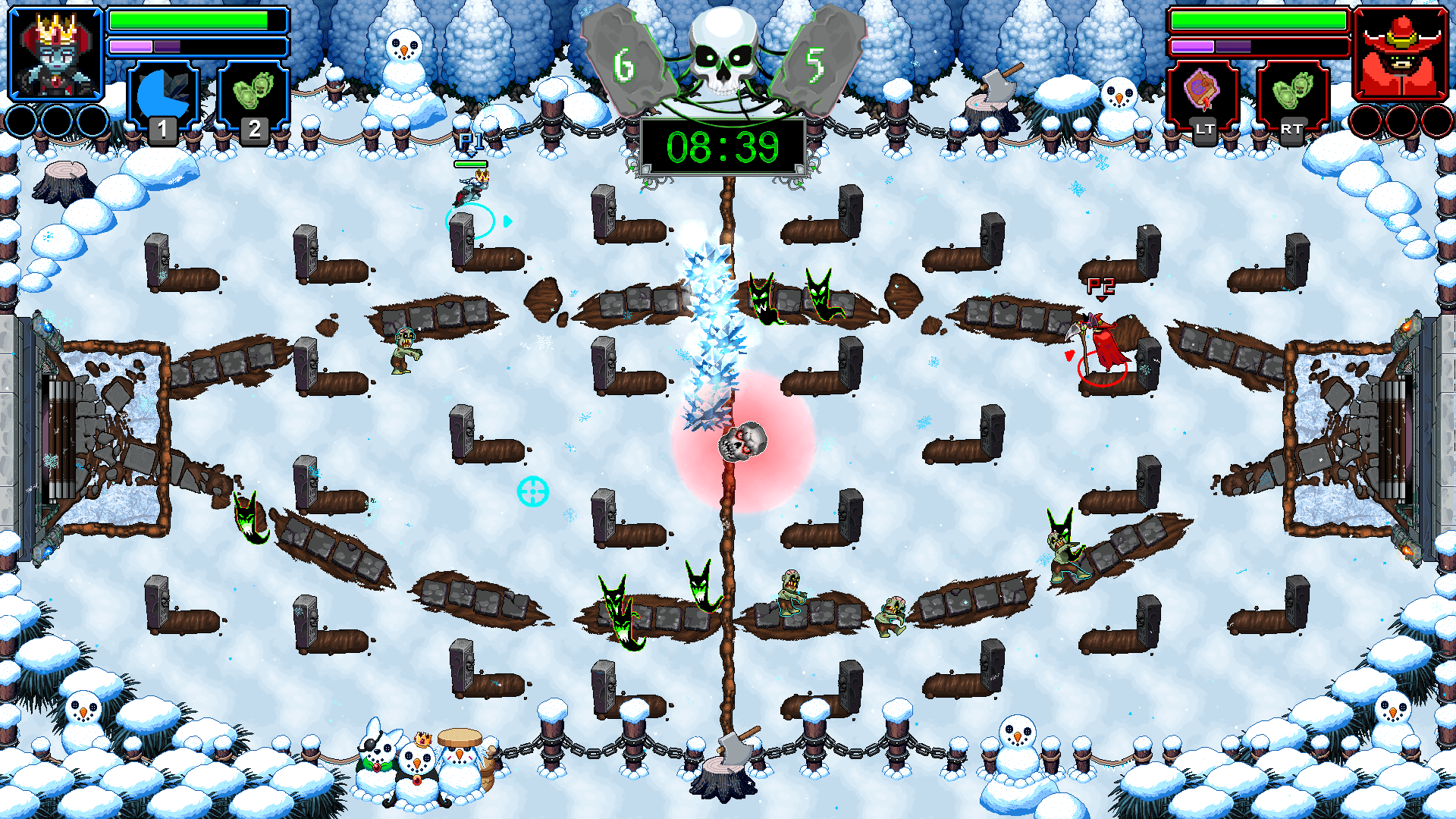 In July 2019, I joined King Crow Studios🐦⬛ to lead a complete overhaul for Necroball, a 2-4 player competitive sports game, implementing menu systems, input systems, gameplay mechanics, and visual hierarchy in the Unity Engine. I excelled in balancing multidisciplinary roles while pursuing a Bachelor's degree in Computer Science at Louisiana State University for 18 months. The team was able to launch Necroball out of Early Access on October 25, 2021, receiving positive reviews and achieving the team's vision of a fun local multiplayer experience.